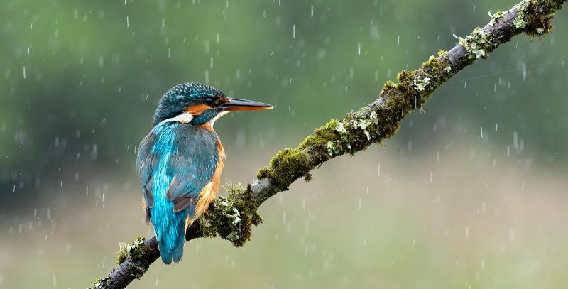 Perched kingfisher in the rain